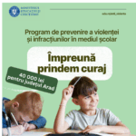 PROGRAME ȘI EVENIMENTE Programul „Împreună prindem curaj” an școlar 2025-2026 14.10.2025 Proiectul ”Știu, pot, fac! Stop bullying în școala mea! 06.03.2025 Proiect interinstituțional „Școala Părinților” 2025 03.02.2025 Concurs județean de afișe ,,Puterea cuvântului: Elevii contra drogurilor” 21.01.2025